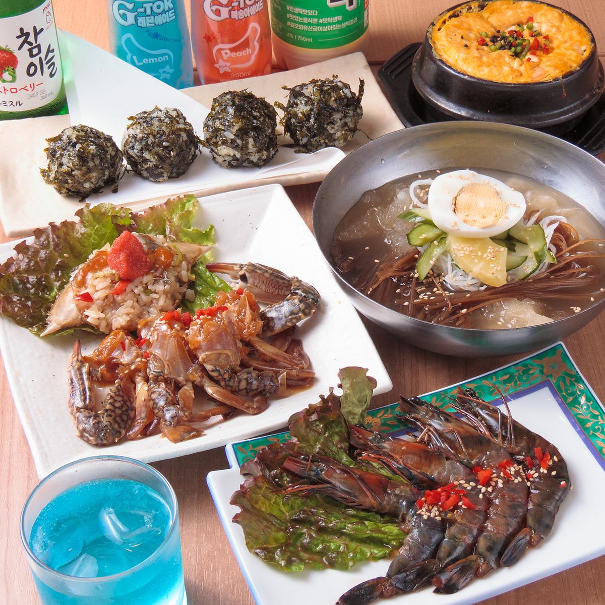 간장 베이스의 삐릿과 매운 맛이 나는 전 달레를 달콤하고 감칠맛이 있는 맛으로 완성한 '양뇽케장'에 밖은 바삭하고 안은 모찌모찌한 독특한 식감이 매력인 '니라치즈미'♪ 한층 더 된장치게로 따뜻하게도 요시, 냉면으로 깔끔하게도 요시의 만족도 ◎ 코스입니다!